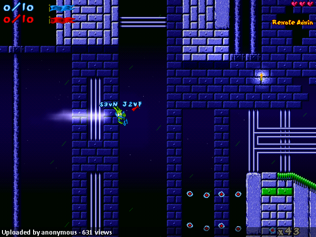 The placement of ammo is strategic and solid, but not very interesting in my opinion as they are used in mostly line patterns. CelL added two pepper-spray power-ups, which is not a problem in my opinion; It’s funny, as I recall CelL told me a couple of years ago never to put two of the same power-ups in a level. Toaster power-up at the bottom left, and a Seeker power-up near the bottom right – all works. CelL pulled an EvilMike by adding a secret; I wouldn’t think of putting a secret in a CTF level, since it’s such a fast paced game-type, but whatever. Two Full NRG carrots are placed beside each other, but getting from one to another isn’t so easy: it’s generally faster to go from the carrot on the left side to the one on the right side than the other way around; smart players can use that to their advantage.
