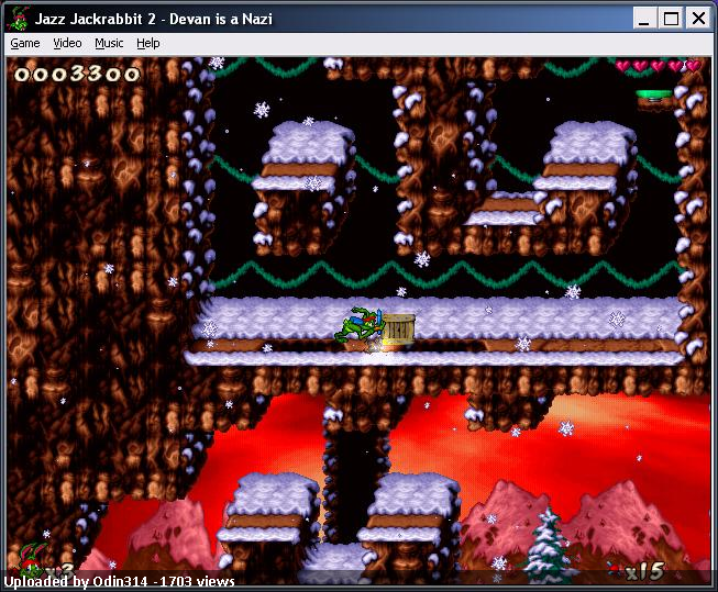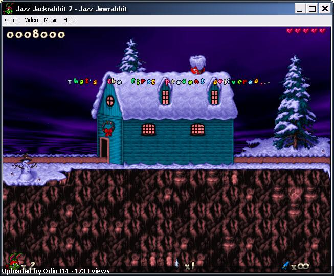 I shall start with the scientolomas adventure which is comprised of a meager two levels. The pack was originally centered around Jazz being a Jew, and a few of the pack’s jokes (intentional or not) fall a bit flat from the name change. The controversial line that sparked the name change is left entirely unchanged save for the replacement of “Jew” with “Scientologist”. How this is perfectly ok, or at the very least any better is beyond me. The first level in the pack is extremely dull gameplay wise, but makes up for it with its sharp sense of wit and humor. Jazz proclaims he is Corporate America as he steals coins (actually silver cookies, though the pack calls ‘em coins more often than not) from the citizens of Holiday Town (only open once a month in the year!) The level design however is extremely linear and the nearly nonexistant puzzles simple and trite. One puzzle (and perhaps the only puzzle) has a rather clever hint, however it serves no real purpose as the puzzle can be solved easily enough through guess and check. The dull level design is majorly hampered by two things: the rather slow pacing despite its amount of enemies, and that two recent coin collection levels that have been released eclipses what can be found here. It is still worth playing for it’s comedy however, though it will feel like a chore for the most part.