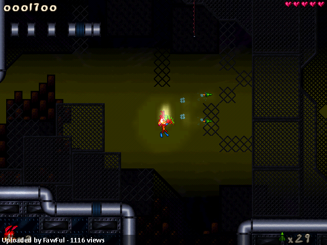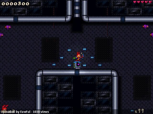 The level overall, plays very well, compared to Faw’s past work I’ve seen, which can be hard to learn the layout of. The flow is a little cramped in some places, like the NRG in the center (Might get chaotic in big games?) but overall, is pretty open. There’s a few features in Chemical Gases that I especially like, for instance, the warp (above the NRG) to the bouncy power up, which leaders to some springs, eventually bringing you through the floor, and up to the Ice power up. This level does actually use ice. To get to the toaster power up, you need to freeze the horizontal springs on the outside. You can also you the ice, to freeze someone near the bottom of the level, causing them to go through the warps, and into the pits, giving some strategy as well. Overall, the gameplay in this level connects, and can be quite an easy level to learn, even though there might be some secrets that can take a bit longer to tackle.