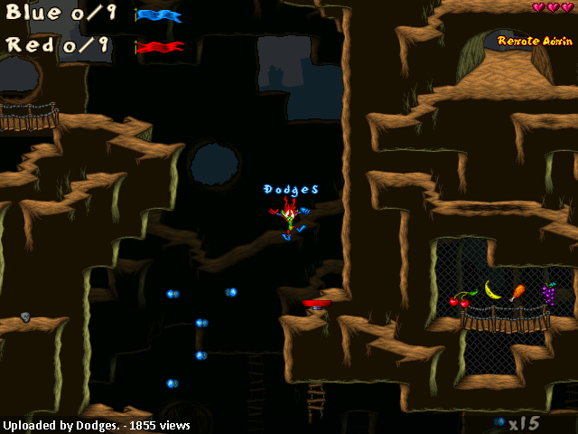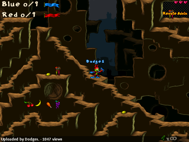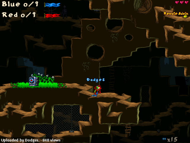 A level simply can’t get more balanced than this is. There are four minor carrots, which fits considering the size of the level. Two of them are floating in the center of the level next to each other, which can be considered as the same as full energy with the default health, although it theoretically isn’t. If the middle feels too dangerous, no worry, you may also heal yourself below your own basement. I guess the Bouncer/RF/Pepper Power Ups are the right choices for this level, as are the rest of ammo-types. I still haven’t figured the real purpose of TNT though. But I suppose it can still be useful in games here, when it’s damage is turned on.