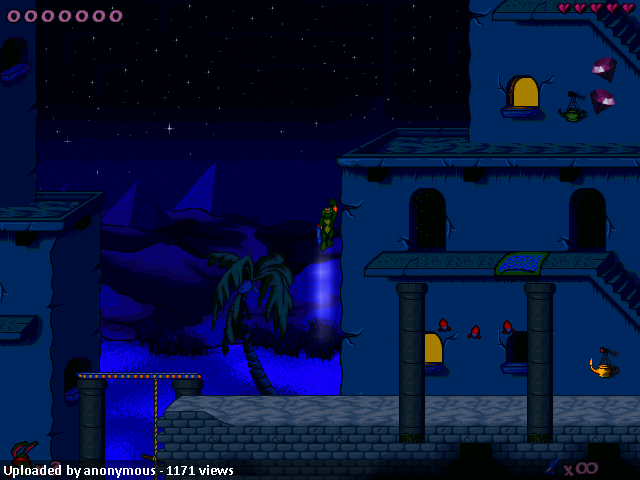 Egypt is the 3rd tileset masterpiece by finish jazzer Agama. The whole thing resembles the ancient egypt, probably in the time of the new empire(or whatever:P). It has some neat things to create a basic egyptian villege, like buildings, a neat’o drawn brick ground. The buildings can be ‘decorated’ with things like plants hanging on the wall in small pots, old fashioned oil lamps, witch also have a lighted version in the night tileset, carpets before doors, windows where you can stand on the balconys and so on. The sky doesnt come as a textured background, but when i look at the layer 8 stuff Agama made for us instead, i totaly realize that a textured background is’nt necesary at all. The layer 8 stuff consists of a sky that already looks textured in the day version, and a beatutifull night sky filled with stars in the night version. It also has a perfectly drawn river(the Nile, no doubt) with the 3 pyramids in the distance, and palm trees at the sides. To decorate the plain bric ground, there are perfctly chaded brick tiles. There are also palm trees to stand on, big decorated pillars, and a incredile gaint statue of spaz, dressed up as a pharao. The poles where, very origenaly, made like those scepters you see pharaos holding on pictures. There are also tiles to create a ancient Egyptian temple, wich are maybe even more gorgeus looking then the ones i have been describing above. The ground here, constists of beautifully drawn brown bricks. There is all sorts of stuff to decorate walls, like the well known Egyptian heiroglyphics, perfectly drawn wall paintings of a rabbit in a charriot, rabbits with pharao-like hats, a few rabbits in a old-fashioned Egyptian canoe, and storks flying above a small pond. There are plants in small vases, and a statue of a black dog. To sum it up, this is one of the greatest tileset ever. Agama, alow me to worship the space you ocupy. And as for you guys, get this now.[This review has been edited by >CelL<]