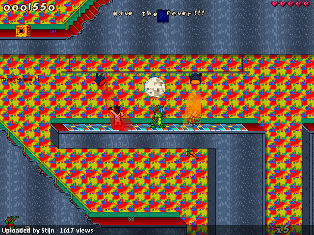 The very colourful “Discofever” tileset contains 400 tiles showing situations from the weekend night life on Carrottus (i guess:-)…Spaz as DJ, Jazz dressed mafia style and smoking and, of course, Jazz, Spaz, Lori and a beaver that wants to be John Travolta dancing like crazy (those animations really rock! Good work!). Apart from that, there are a lot of useful level structures and objects like this reflecting disco thing (my english vocabulary really sucks), semi-transparent lights, walls, stone, stairs and so on…too much to list here.