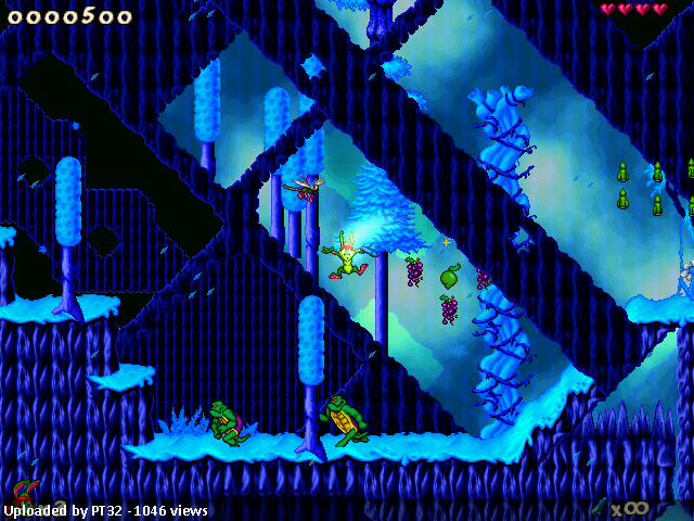 Well as i said enemies were rather easy to beat for me. Perhaps the reason for it is because i was able to shoot most of the enemies standing 1 tile above instead of coming down, and the other part was cuz i have just recently played blacky’s map which was quite hard. Enemies here are placed okay just some were easy to pass due to 1 tile height advantage. Boss in the water was a very good idea, and few turtles placed along with him was really good too. But adding seekers AND a full carrot made it rather too easy for me, i didnt even need the carrot since i lost only 1h. Still i very much like the idea .