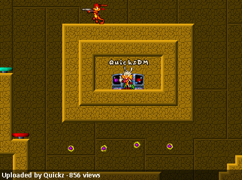 ‘Evilmikes hidden temple’ is a realy l33t battle level. It makes pretty good use of one of Evilmikes tilsets, wich one some points reminds me of JJ1: Deserto. The design of the level is very circular, thus creating pretty fluent gameplay. There is good weapen placement. The coins for the bonus waro are well devided, not to litle, not too much. The use of layers is also very nice. I like the way the level is divided int two sections: the hidden temple and the desert outside. It is a litle small, but thats not much of a pitty. I am going to give this a pretty high 8.0 points and a download recomendation.