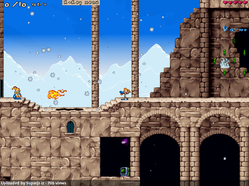 This level is probably my biggest multiplayer level yet in the terms of work and effort put in its development. I started active development on it in September 2017. After gaining more proficiency with AngelScript and the scripting API provided by JJ2+, I was able to write more advanced and cleaner code on my own than previously, with Jazzopoly for example. Once again special thanks to Sir Ementaler for helping me resolve very problematic situations.