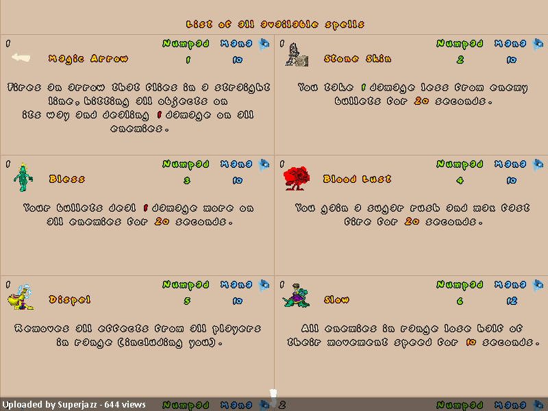 v1.1.2 – Made spells from tier 3 available as starting spells in normal mode to reduce the need to hog the “spell shop” to learn all of the spells and to balance the game in general. Fixed and optimized some processor loops code-wise.