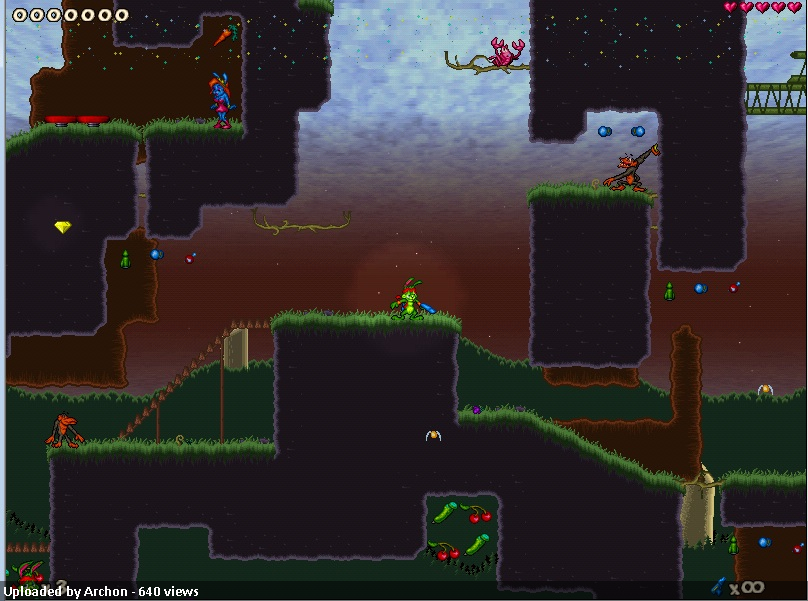 Besides the one witch, there’s a respectably-sized menagerie of enemies that seem appropriate to the tileset, all managing to pose the occasional, yet never outsized, thread. The level also boasts a solid, yet never excessive, number of carrots and ammo pickups to make your battles that much easier. And ultimately its success lives and dies on the question of how much you enjoy walking around and shooting normal JJ2 enemies, because it gives you a whole lot of opportunities to do that, without any obvious flaws but without any enormous innovation or variety… and there’s nothing wrong with that.