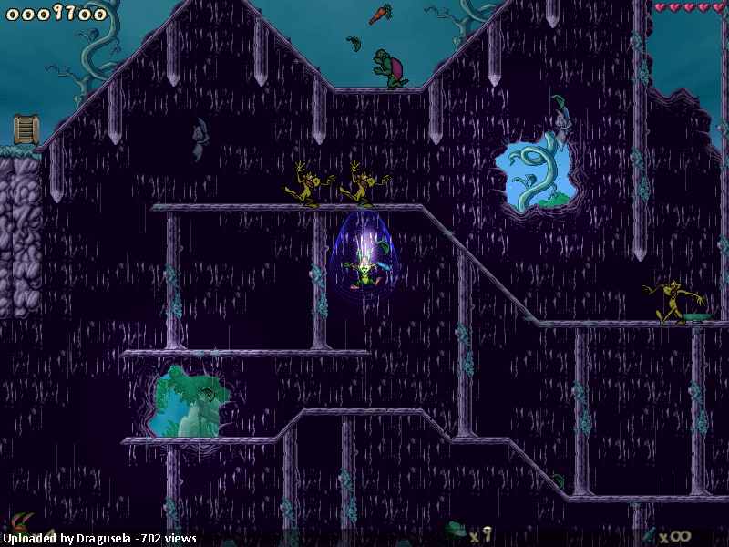 Some of these were promptly fixed by Dragusela after I reported them, others remain. One lingering problem is that the level basically requires you to play as Spaz, but doesn’t tell you this. If you happened to select Jazz or Lori, a lot of platforming will be much more difficult and there are a couple of places where you can get stuck outright (e.g. 325×104). The level does have separate starting positions for Jazz and Spaz, so it seems like the intention was to support at least those two characters, but the rest of the level design doesn’t reflect that.