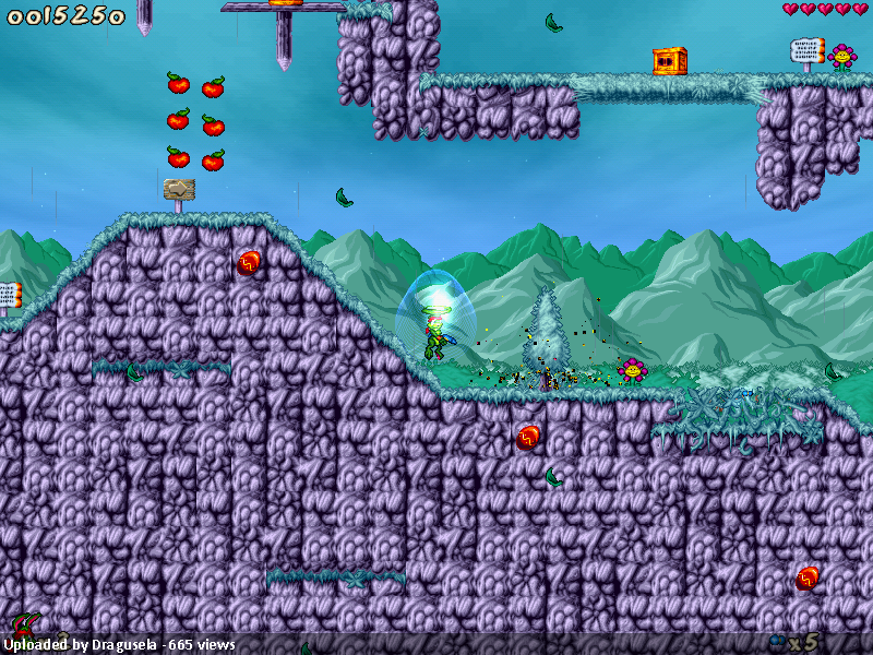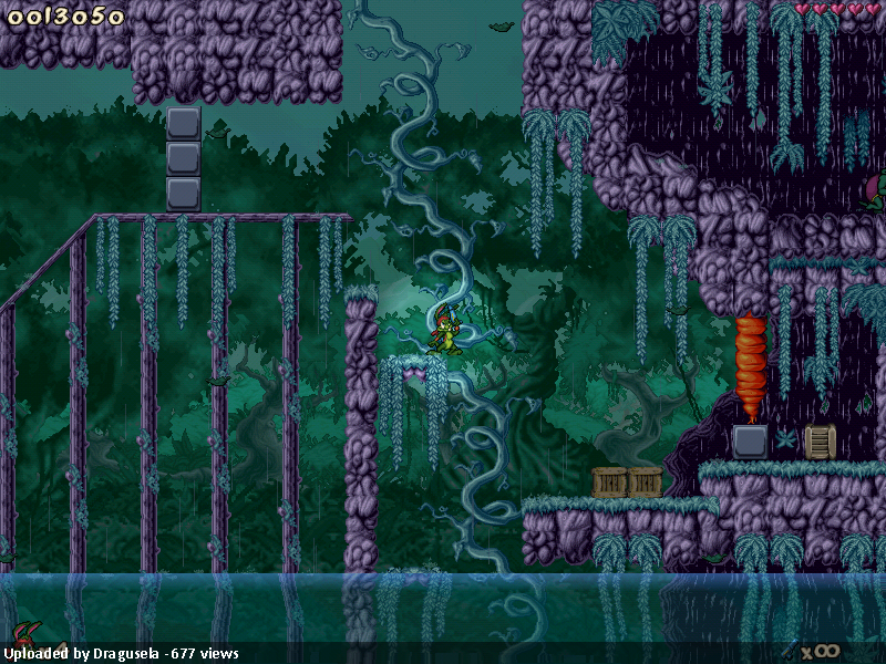 If you are playing with Spaz, the level is a decent trip, though there are a few places where it’s easy to get lost as you have to backtrack because a crate just appeared a couple of screens back because you just walked through a trigger zone. This is not signposted very well – and sometimes the trigger zone is easy to miss too because the level expects you to take a certain path, but another one is equally viable! The more straightforward parts of the level are okay, and the level overall looks quite nice, although there are also more than a few tile bugsand the music didn’t seem to fit very well (but nothing as subjective as music selection). I do wish enemy placement had been a bit more challenging – they’re not exactly difficult to avoid at the moment. It all ends with Uterus, who I found no fun to fight underwater, but I suppose that is a way to make it more challenging to beat.