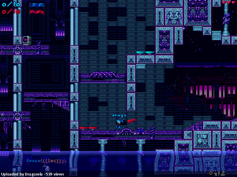 A very interesting palette choice for the given tileset. It looks very retro and cool, well done! The layout is decent and plays well. However, I don’t like that there’s only one entrace for each base. This makes it easily for the opponent to defend where you might as well die before you can take the flag with you.