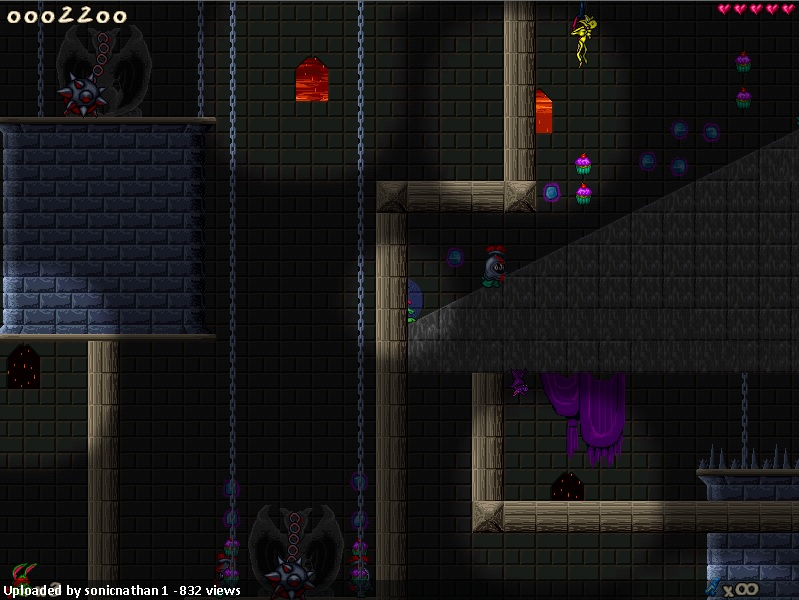 A random thought: for all that this is a single player episode, these elements remind me of something like Cracco World of Coins, or the UR Orbs levels. There, some of the progression is equally arcane, but because many players are exploring the same area at once, they can use chat to share discoveries and get everyone to the finish faster. Here you're more on their own. Also, because checkpoints don't do a good job of saving trigger scenery states, often the pack will make you spend many minutes in a row tracking down secret after secret, all the while dodging enemies and spikes, knowing that death will reset all your progress.