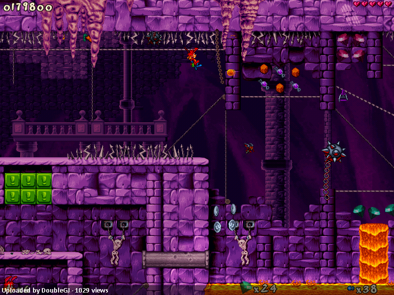 To make proper use of all the stuff included here, like the png image assets, the Castle spiral slides, the GBA gargoyle platforms, lava, all this stuff… Yeah, get used to it, JJ2+ and its AngelScript implementation are a must. And once again, the example levels are an excerpt from Demon Dash episode 1, and they definitely require JJ2+. Like in JungUlt, all the story is left intact, but these are levels 2 & 3 of the episode, so they’re much easier to just jump straight in! (And even if you’re confused, check out the newly-introduced JJ2+ Help option in the pause menu, which has some extra stuff in these levels!)