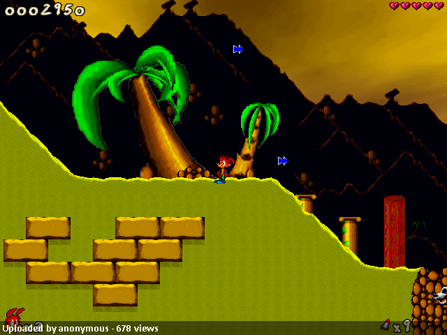 Tiles included: I havent played jj1 in a while, but it looks like everything is there. I especially like those flowing red things, they look well converted and animated. The rocks could of also been somehow animated (those small ones that you stumbled on in jj1), but I dont mind, and they ARE included. Also, a lot of other things are included: Invisible tiles, Poles, Vines, Hooks, Different Sign posts, Jungle poles, arrows, VERY large destruct block variety, sucker tubes, the “approaching turtemple” thing, and some other things. Nice.