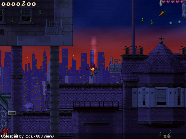 There are two power-ups here, RF and Bouncers accesible only by shooting them; three types of weapon(Freezer, Bouncer and RF). Yes, there are no seeks here. Two carrots +1, both in the middle and two pits around the coin warp. Coin is in the middle over one carrot, warp is in the middle under the second.