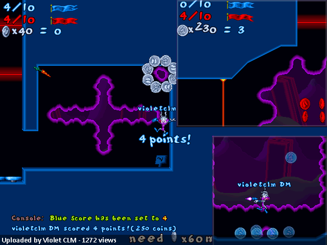• In the top left corner of your screen, under the team scores, you get a live preview of how many coins you’re carrying and how many points they’ll be worth if you get them back to your base. Each time a score is made, the details will be announced to the server as well.