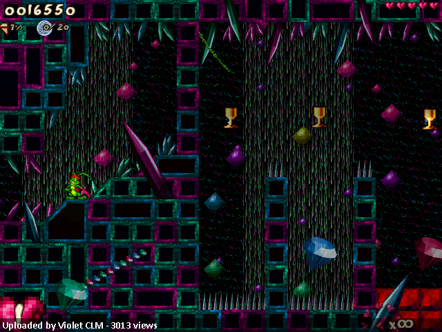 11/7/18: General: lava should disappear less; certain switches shouldn’t break when you die. L1: added warps to boss walls. L2: made a secret look less deadly; made ending less abrupt. L3: fixed checkpoint/water interaction. L4: removed four sequence break opportunities; fixed vertical transitions; put warps under one swinging vine; made false prophets more helpful; made lower cathedral revisitable; made second cathedral entrance more obvious; added clue for one crystal falls puzzle. L7: lessened threat from pit. Guardian: added one cameo. Credits: removed one name; credited Chiyu for cow.