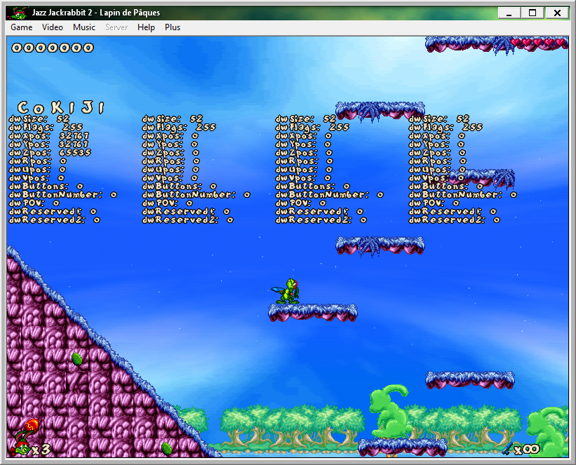 I just got an older PC that I've installed Windows XP on for playing old games like these. Anyway, JJ2+ didn't want to recognize my joypad at all, and when I tried using Joy2Key my rabbit kept looking up. I then tried that DLL you posted there and now everything works perfect and my joypad is recognized to start with, this is working great. However, you know, there's a bunch of debug information cluttering the screen. Is there a way to turn it off, or can you make an update without the debug mode? |