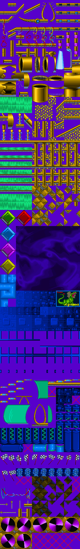 What's the light at the end of the demon-jaw-tunnel background in Jazz2 deep hell supposed to be? Whose idea was it to make an Alice in Wonderland-based level in Jazz2? What's your favorite sprite out of both games? And what's your favorite tileset? Which tileset took the most work or was the most challenging? An Agama set is mandatory. Other than that, I think a Blade set and Gus' mine set... I'll get to making those screenshots, hopefully.